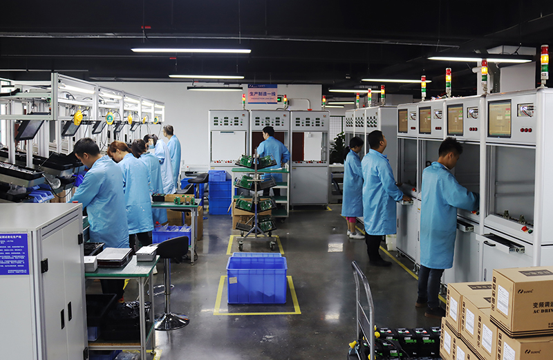 在會議中全體與會人員在龔總陪同下參觀了日業(yè)電氣生產(chǎn)車間。公司擁有標(biāo)準(zhǔn)化廠房14000平方,共分為三條主力生產(chǎn)線:0.44KW變頻器裝配測試?yán)匣a(chǎn)線、BM系列專機(jī)變頻器裝配老化測試生產(chǎn)線、5.5-15KW變頻器裝配測試?yán)匣a(chǎn)線。年產(chǎn)值達(dá)5億元。