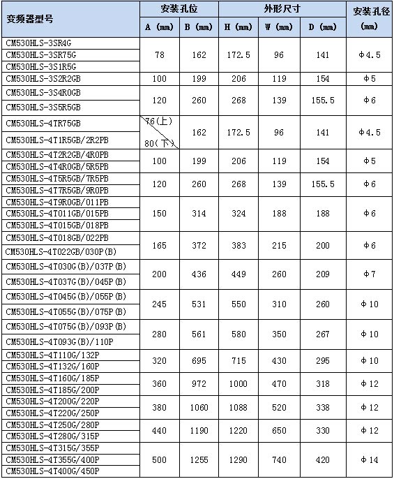 45~132KW變頻器外型尺寸及安裝尺寸示意圖
